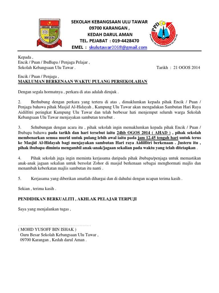 Surat Balik Awal Sambutan Raya Pdf